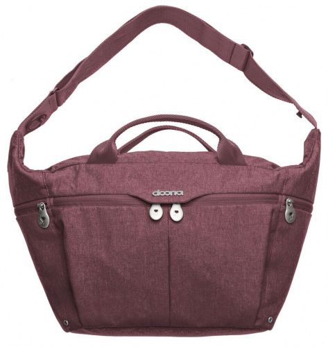 Модель создана из простых в уходе материалов. Сумка имеет большое пространство, которое разбито на множество оптимально подобранных отделений. Внутри сумки можно рационально разместить различные игрушки, детские принадлежности и личные вещи, общим весом до 3х кг. Стоит отметить наличие специальных креплений для быстрой и простой фиксации сумки на коляске Doona. А если нужно будет нести её на плече — то можно использовать регулирующийся ремешок, позволяющий подобрать наиболее удобную позицию сумки.