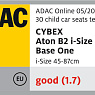 соответствует стандарту R129 I-Size. В независимых краш-тестах ADAC (Германия), оценка «Gut»(«Хорошо»);