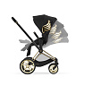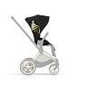 Коляска Cybex Priam IV Jeremy Scott Wings обладает уникальным дизайном. Коляска выполнена в элегантном черном цвете с оригинальной золотой рамой, колесами с блестящими золотыми спицами и, конечно, с коронными золотыми крыльями на сидении.